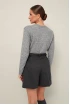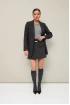 Стильный 2-предметный комплект, состоящий из жакета и юбки-шорт. Комплект выполнен из качественной костюмной ткани. Жакет современного прямого силуэта однобортный, застёгивающийся на петли и пуговицы, край борта скругленный по низу изделия. Воротник пиджачного типа с отложными лацканами. По переду обработаны прорезные карманы в рамку с клапанами. Рукава втачные двухшовные. Спинка со средним швом. Изделие на подкладке. Юбка-шорты в длине мини, на обтачке по поясу спереди и с притачным поясом по спинке. На переднем полотнище обработаны клапаны, имитирующие карманы. Застежка в боковом шве на потайную тесьму-молнию. По низу рукавов жакета и в юбке-шортах по линии талии предусмотрены шлевки. В комплекте прилагается акцентный пояс.