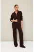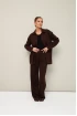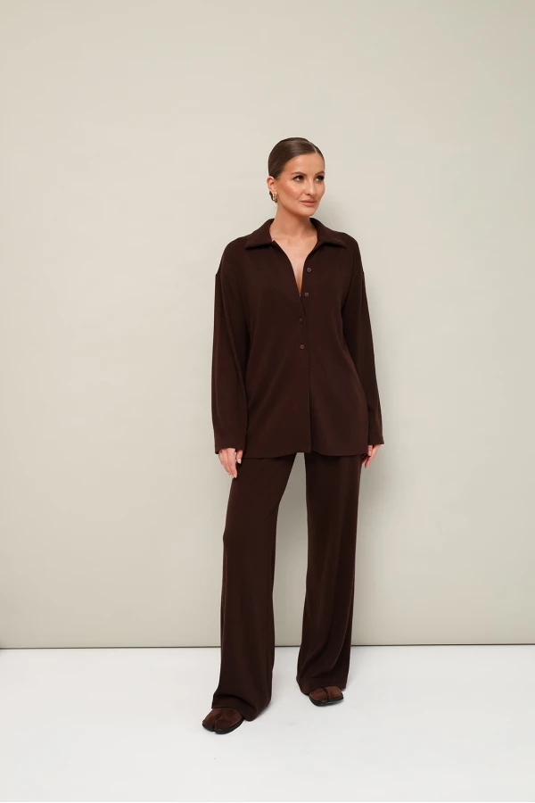 Комфортный брючный комплект с джемпером, выполнен из качественного трикотажного полотна. Джемпер прямого силуэта. Горловина с отложным воротником. Центральная застёжка на петли и пуговицы. Длинные рукава со спущенной линией втачивания плеча. Брюки прямого кроя с посадкой на талии. Пояс обработан эластичной резинкой.