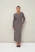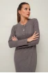 Стильное платье полуприлегающего силуэта, выполнено из трикотажного полотна. Горловина округлой формы, с центральной застежкой на петли и 4 разных пуговицы. Рукава длинные втачные. В боковых швах обработаны высокие разрезы.