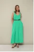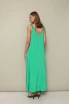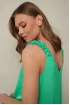 Лаконичное платье А-образного силуэта, выполнено из струящейся ткани с благородным матовым блеском. V-образный вырез горловины переда и спинки. Стильным акцентом служат переплетенные бретели из основной ткани. В боковых швах обработаны карманы. Спинка со средним швом. Изделие без подкладки.