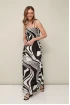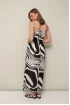 Летнее платье на бретельках с регуляторами, в длине миди. Платье выполнено из натурального хлопка с абстрактным принтом. Лиф прилегающего силуэта, собранный на венгерку, низ слегка расширенный к низу. Платье обработано хлопковой подкладкой.