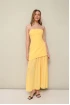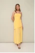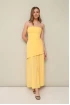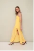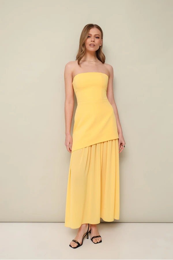 Платье отрезное по линии талии в длине макси, выполнено из плательной ткани и крэш-шифона. Лиф корсетного типа с чашечками, формирует и подчеркивает силуэт. Юбка из основной ткани с ассиметричным низом и с имитацией подъюбника из крэш-шифона. А боковом шве шифона обработан высокий разрез. Спинка с застежкой в среднем шве на потайную молнию. Платье на хлопковой подкладке. В комплекте прилагаются съемные прозрачные силиконовые бретели с регуляторами