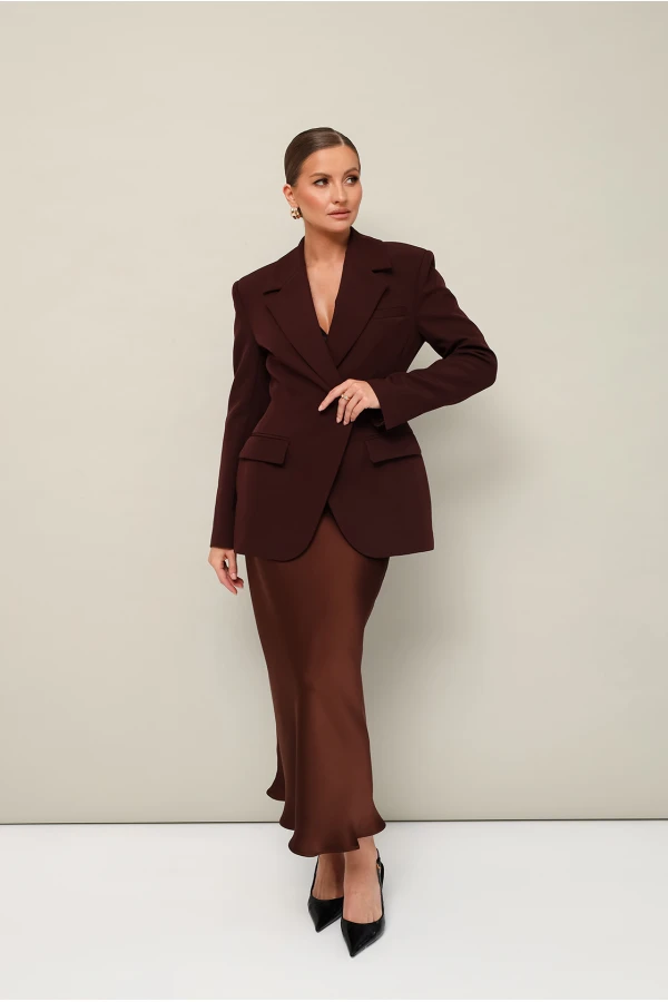 Юбка с кроем «по косой» в длине миди, пояс на обтачке, застежка в боковом шве на потайную тесьму молнию.