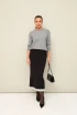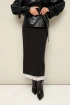 Юбка-карандаш прямого силуэта в длине миди. Верхняя юбка выполнена из костюмно-плательной ткани, пояс на обтачке, застёжка на потайную молнию в среднем шве по спинке. Нижняя юбка на резинке по поясу, низ обработан кружевной отделкой с сеткой. Для удобства движения сзади по юбкам обработаны разрезы.